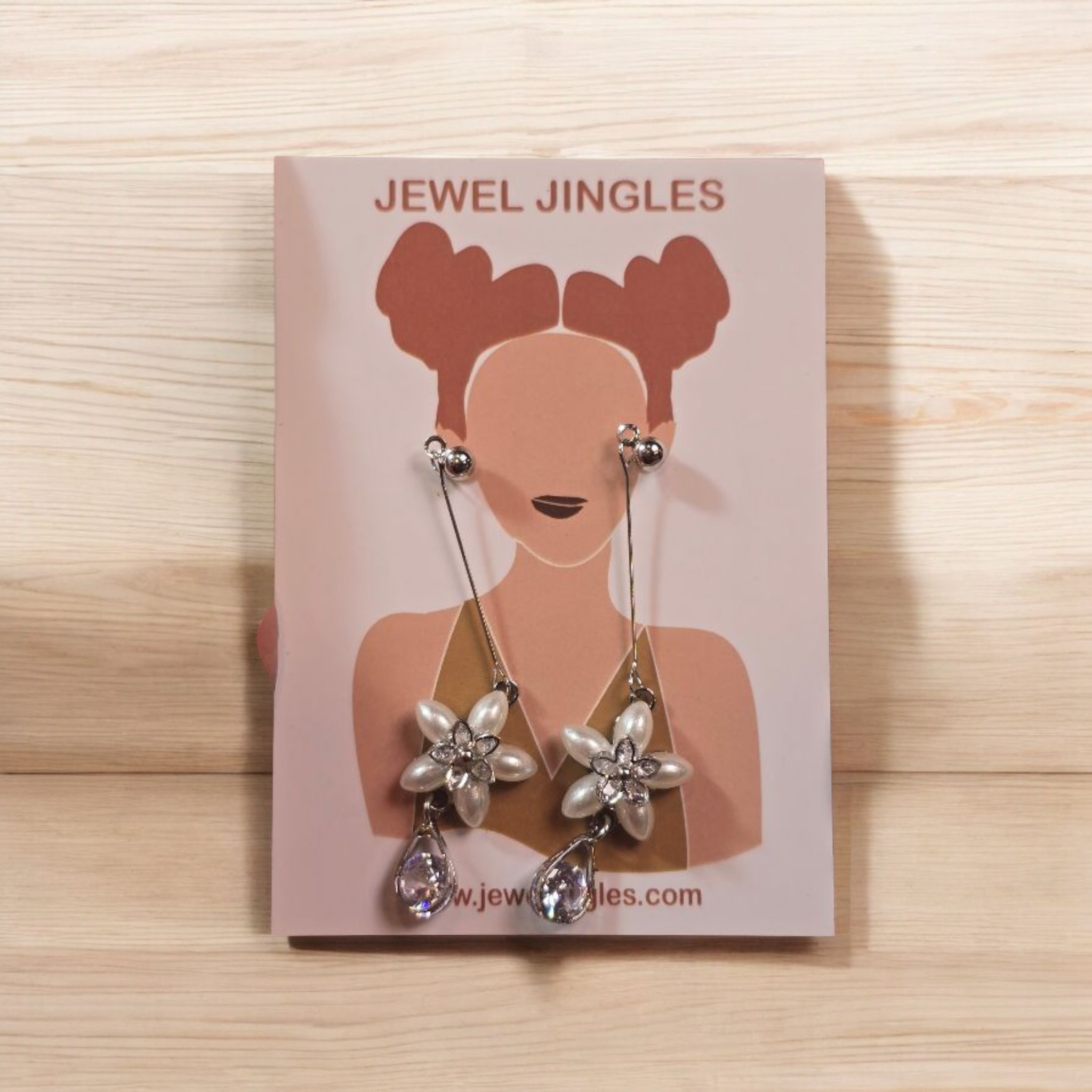 - Design: Floral motif with pearlized petals, crystal flower center, and teardrop charm