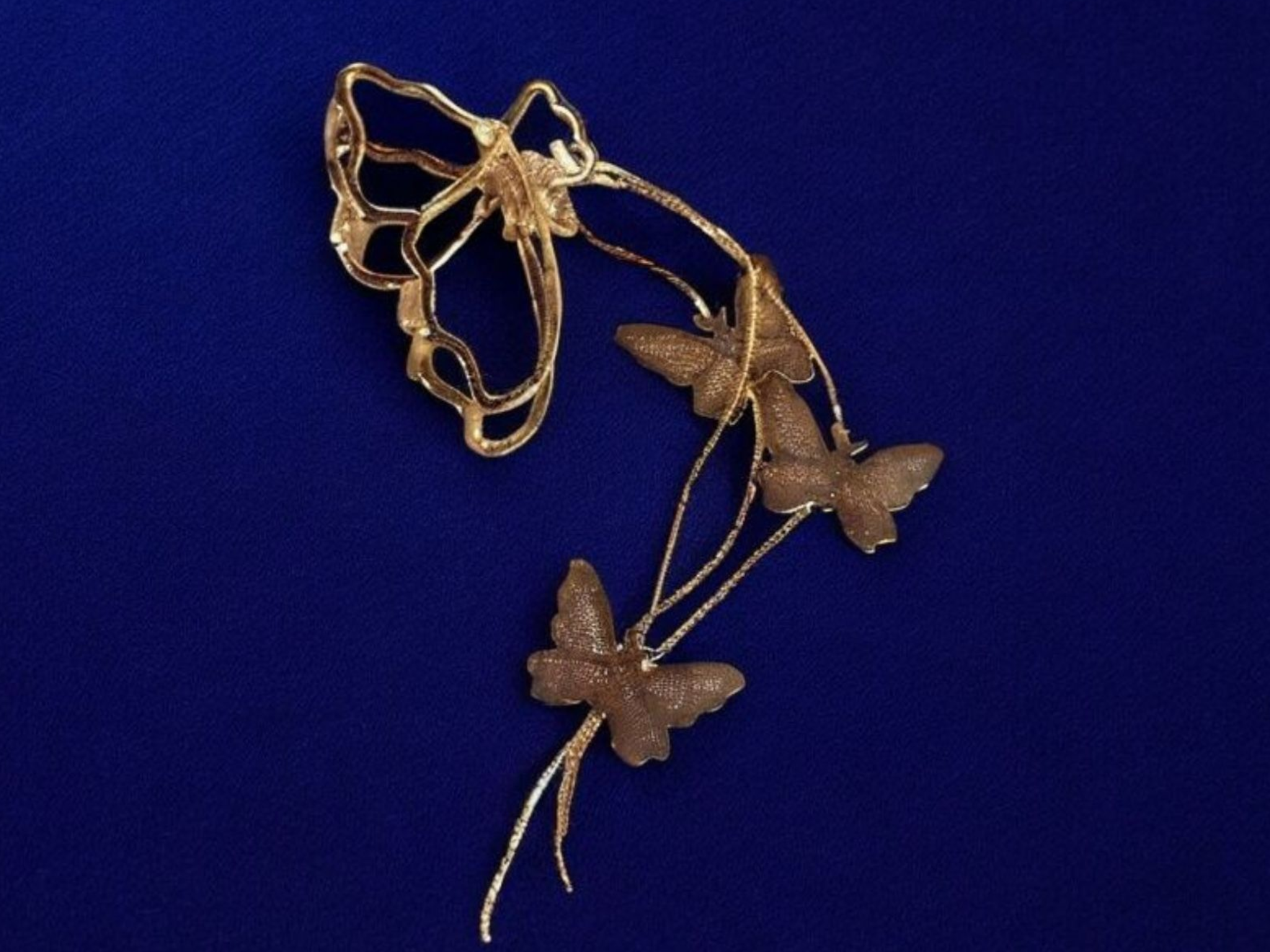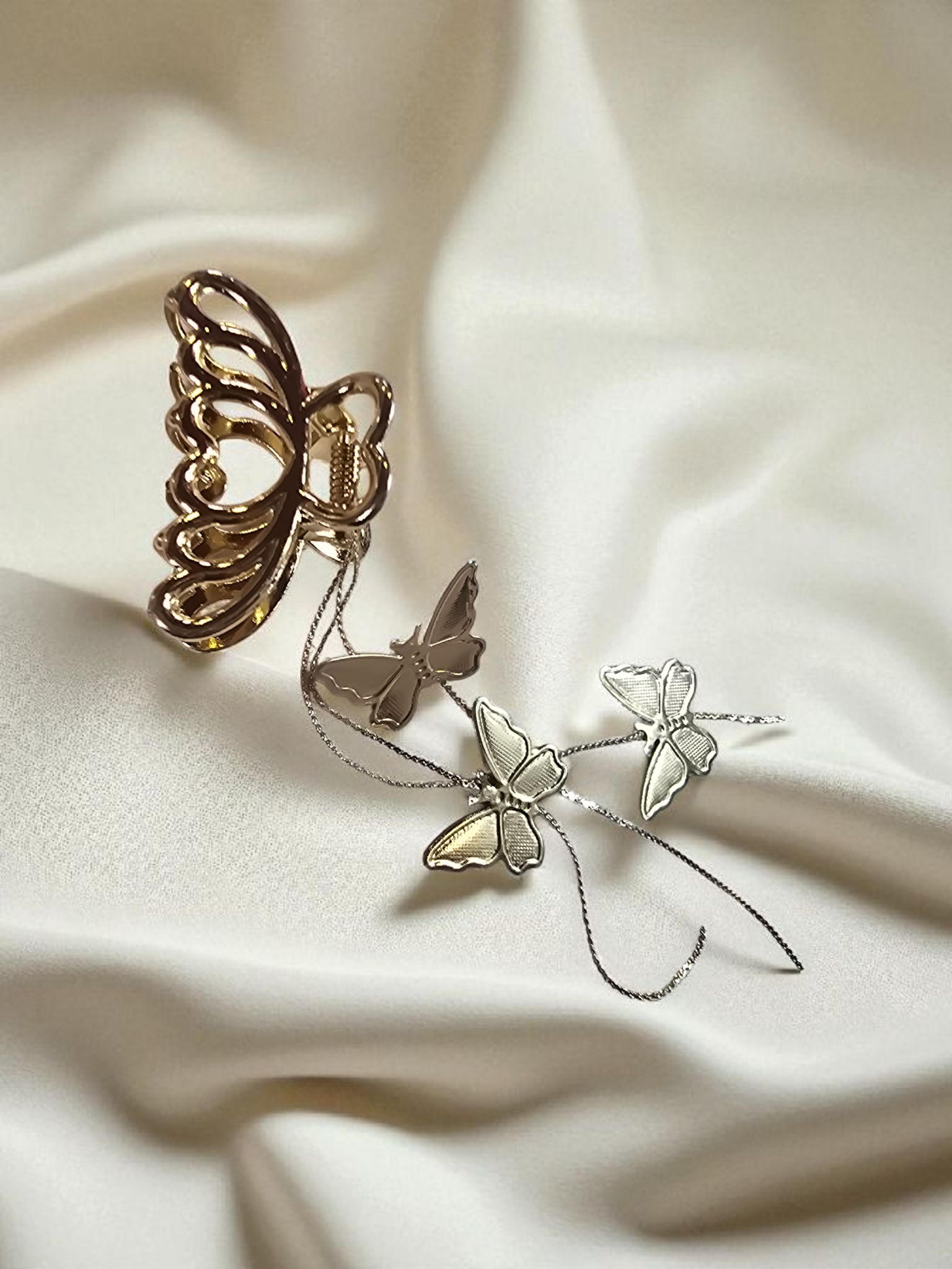 - Design: Delicate, openwork butterfly motifs with cascading chain accents