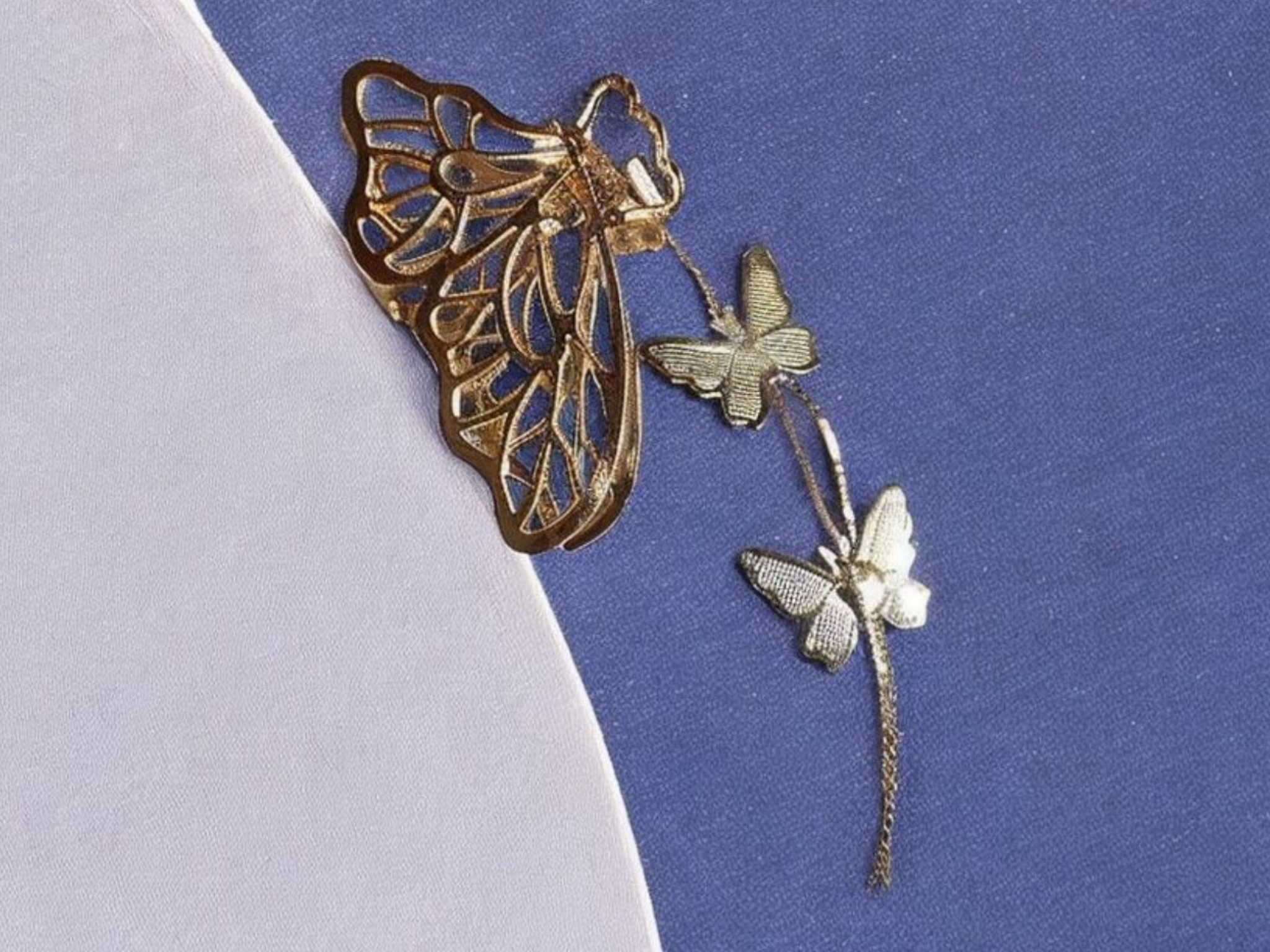 - Color: Warm gold finish with subtle black and cream butterfly highlights